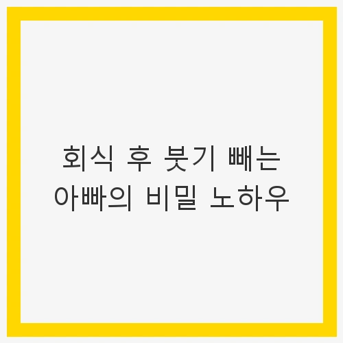 회식 후 붓기를 빼는 것은 많은 사람들이 고민하는 문제입니다. 남녀를 불문하고 술과 안주로 인해 불가피하게 발생하는 이러한 붓기는 일상생활에 불편을 줄 수 있으며, 특히 아버지 세대에게는 더욱 성가신 문제로 여겨질 수 있습니다. 많은 아버지들이 겪는 이러한 상황에서, 그들만의 특별한 해소 방법이 있다는 것, 알고 계셨나요? 이번 글에서는 회식 후 붓기를 빼는 아빠의 비밀 노하우를 공유하고, 이를 통해 건강을 지키며 활력을 되찾는 방법에 대해 알아보겠습니다.
