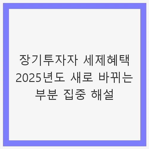 👉장기투자자 세제혜택 2025년도 새로 바뀌는 부분 집중 해설 알아보기