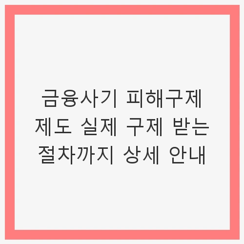 👉금융사기 피해구제 제도 실제 구제 받는 절차까지 상세 안내 바로보기금융사기 피해구제 제도란?